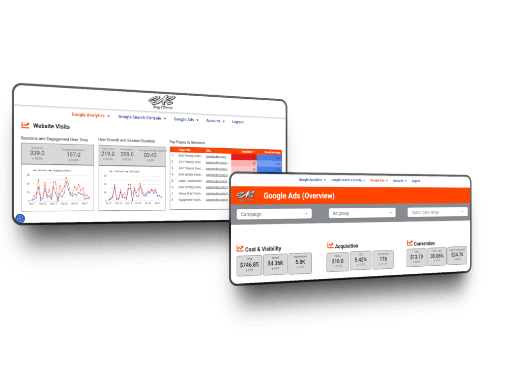 Ad Insight business intelligence software Round Rock gives service businesses full visibility into their digital performance. Built on real-world marketing data, our dashboard connects your website, Google Ads, SEO metrics, and call tracking into one clear, easy-to-read platform. No guessing – just analytics that drive decisions.