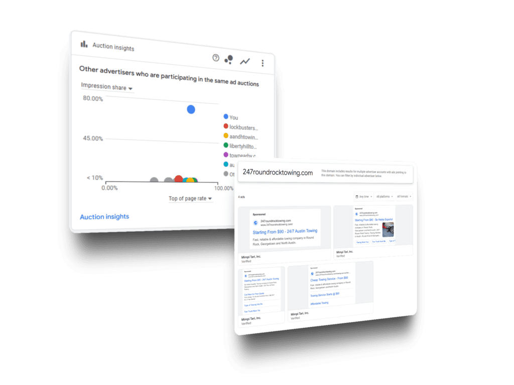 Ad Insight Google Ads Georgetown TX campaigns consistently outperform generic ads and competitors. Auction Insights shows how our strategy captures the right traffic, reduces waste, and delivers real results. Over the past year, we’ve refined a proven approach that maximizes every ad dollar without overspending.