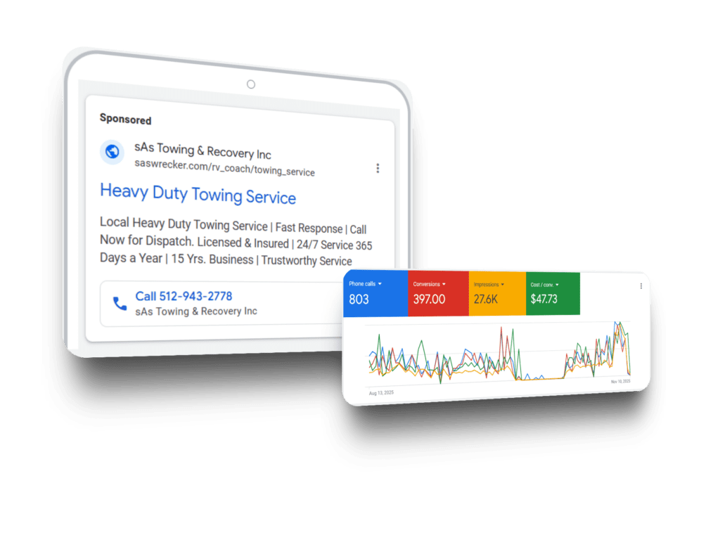 Ad Insight Google Ads are built to win in competitive markets. Our data-driven approach targets high-intent searches, limits wasted spend, and consistently turns ad clicks into real customer calls. Integration with our advanced call tracking ensures every call is routed instantly.